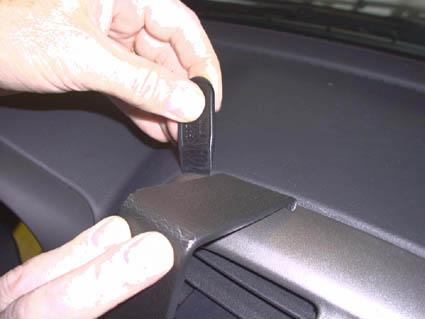 Håller en komponent som monteras på ett instrumentbräde i en Toyota RAV4 01-03.