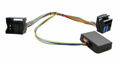 Video in Motion-kablage anpassat för Volkswagen. Vanligtvis får man endast in video från backkameran när backen ligger i, men med detta kablage får du in video hela tiden, även när bilen åker framåt.
