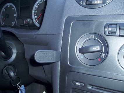 Bild visar instrumentpanel med ratt och radiokontroller för Volkswagen Caddy 04-15.