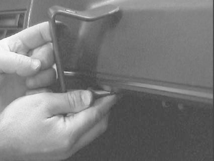 En hand håller i en vinklad del som ser ut att installeras på en Volkswagen Golf II.