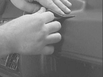 En hand fäster något mot en bilinteriör i en Volkswagen Golf II.