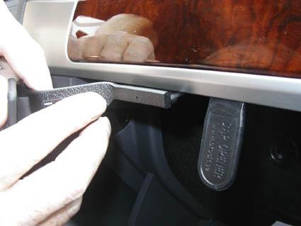 Verktyg används för att justera en del i ett Volkswagen Touareg-fordon.
